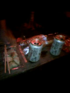 とりあえずビールと、あと仲間と片っ端から買った出店商品。